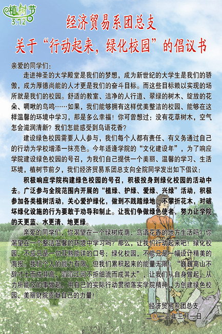 富有特色的“行動起來,綠化校園”的倡議書