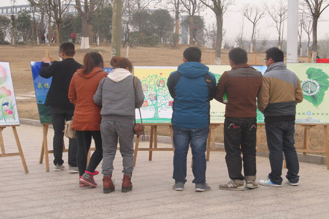 本次展出的每一張作品都充滿了綠色生態的色彩,凝結著每一位學生智慧的結晶,創意十足,具有強烈的視覺效果,表現了建設生態文明重要性的主題,過往的學院老師和同學們紛紛駐足觀看。