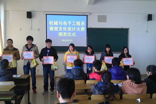 3月21日下午,機(jī)械與電子工程系在S3-308教室舉辦寢室文化設(shè)計大賽頒獎儀式。系副主任何振華、團(tuán)總支書記古翀、輔導(dǎo)員、自管會學(xué)生干部、各班班長及宿舍長等參加了頒獎儀式。