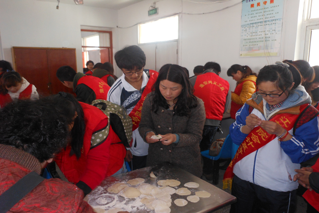 青年志愿者為老人們包餃子