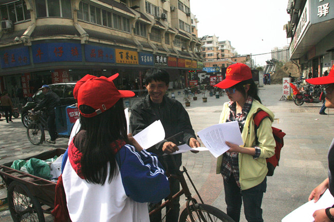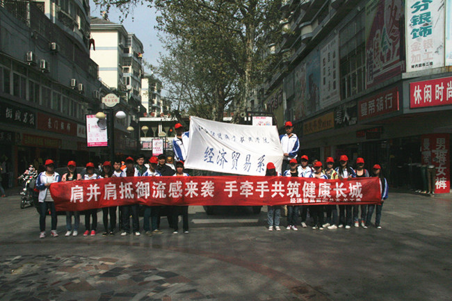 由于近日我國部分地區發生H7N9禽流感,面對H7N9禽流感防控越來越嚴峻的形式,為了更好地維護居民健康,養成健康衛生的生活習慣,提高身體素質,增強疾病的抵抗能力。4月14日下午2:30,經濟貿易系大學生黨員志愿者深入環城社區圍繞“肩并肩抵御流感侵襲,手牽手共筑健康長城”的主題展開了一次宣傳服務活動。學院關工委汪建樹老師、系團總支書記林森參加此次活動。