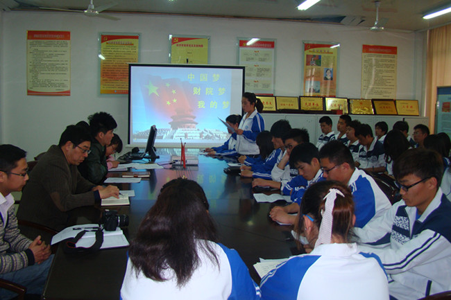 會前,主持人播放了“中國夢”宣傳片,祖國的繁榮巨變通過視頻歷歷在目。在座談環節,同學們你一言我一語,紛紛表達了自己對“中國夢 財院夢 我的夢”的理解。