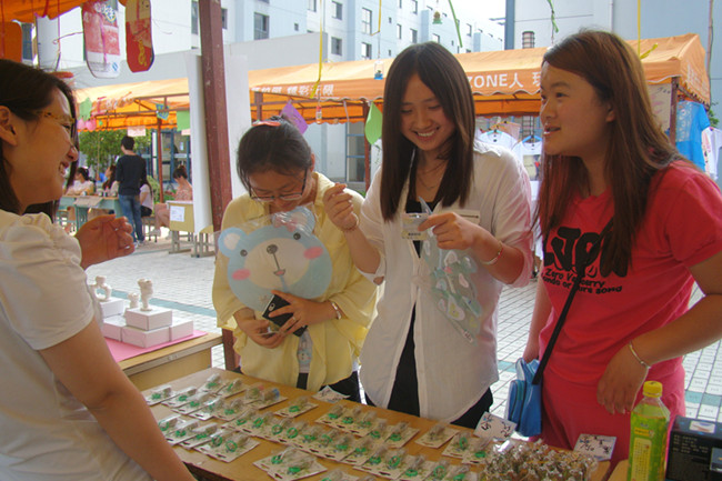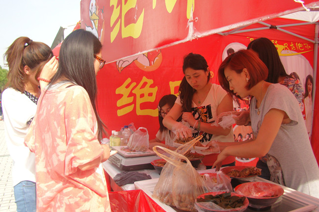 與往年的攤位名號相比,今年的店面招牌更是新穎奪目,“哎呦,我的草”、“糖心風(fēng)暴”、“仙芋誘惑”等店名既好聽又創(chuàng)新,當(dāng)然客源滾滾而來。最具特色的還屬可愛風(fēng)的“衣然愛你”,幾個女生身穿連衣裙,模樣既可愛又甜美,男顧客們又怎能擋住她們的魅力?