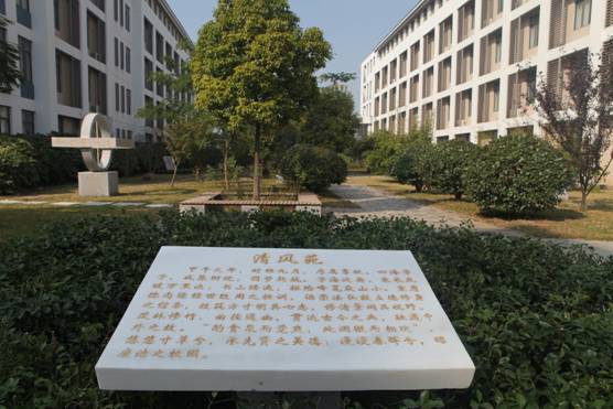 清風苑位于力行樓與篤行樓之間,被學校會計學院、經濟貿易學院、工商管理學院、金融學院、人文藝術與法律學院辦公樓和實訓樓環繞其間,入口朝東。古人有云:“清惠之風,同於天德。”南朝梁劉勰在《文心雕龍?誄碑》中說:“標序盛德,必見清風之華。”清風苑,取“清風”之本意:清微的風、清涼的風以及清惠的風,以此寓意高潔的品格。