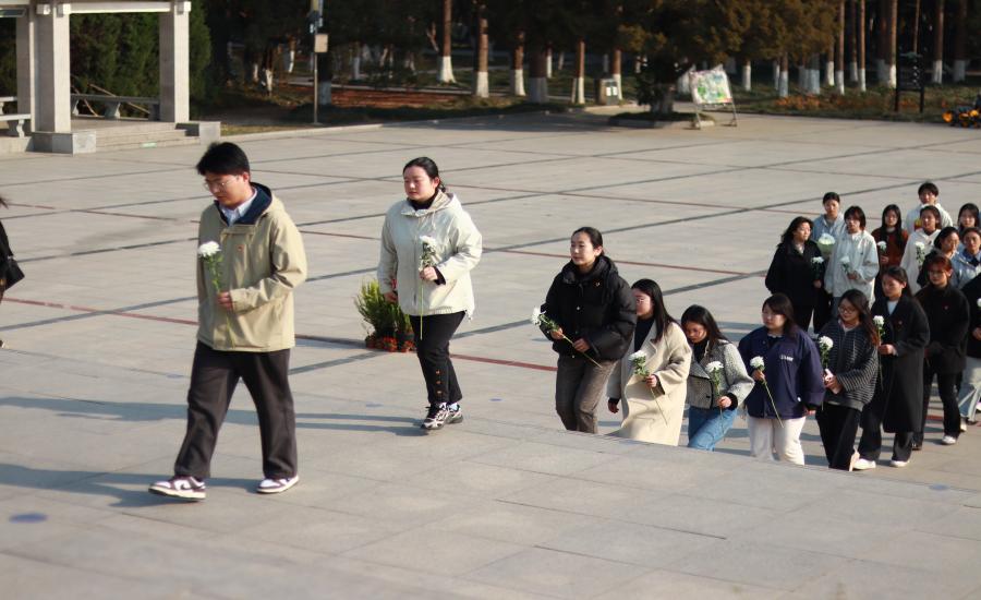 隨后,在八十二烈士紀念碑前舉行莊嚴的紀念儀式。全體師生黨員垂首肅立,向長眠于此的烈士默哀三分鐘,深刻緬懷革命先烈的豐功偉績;默哀畢,同志們手持白菊依次緩步走向紀念碑,敬獻鮮花并瞻仰碑文;最后,集體向烈士行三鞠躬禮,以最質樸的儀式表達無限追思與崇高敬意。