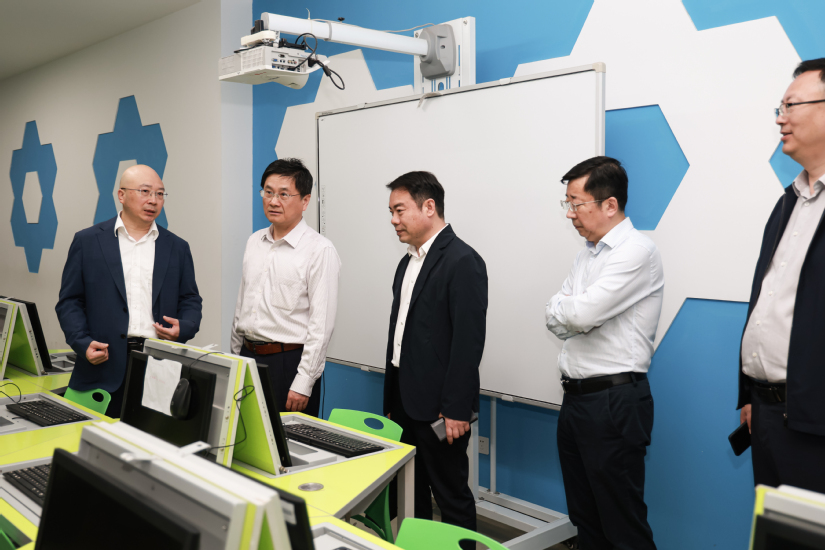 張維陪同吳蘇一行考察了智能制造實訓中心、知行樓實訓室、智慧商科綜合實訓中心及圖書館電子閱覽中心等數字化教學與實訓場景。通過實地走訪查看,吳蘇了解學校的數字化和跨專業人才培養的先進理念。調研組高度評價學校的育人理念、教學模式以及實訓條件,充分認可學校在人才培養方面所做出的積極探索與取得的顯著成效。