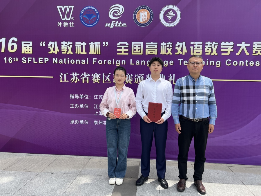 5月16日至18日,第十六屆"外教社杯"全國高校外語教學大賽江蘇賽區決賽在泰州學院圓滿落幕。我校商務英語學院的竇子涵、包悅教師團隊以總分第一的優異成績獲得職業院校組一等獎。