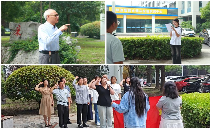 活動伊始,蔡振華作動員講話,強調“廉潔是黨員的生命線”,號召青年學子在新時代征程中永葆清正本色。隨后,學生代表深情講述廉潔主題故事,以生動的語言再現了老一輩革命家嚴于律己、清正廉潔的感人事跡,將抽象的廉潔理念轉化為鮮活的藝術表達,讓師生們在聆聽中接受廉潔文化的熏陶。接著,在黨旗的見證下,學生黨員代表領誓,全體黨員高舉右拳莊嚴重溫入黨誓詞。鏗鏘有力的誓言回蕩在清風苑,彰顯了黨員們堅守初心、牢記使命的堅定信念。