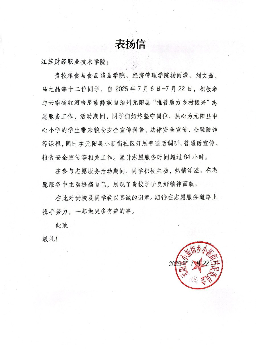 7月7日-22日,學校糧食與食品藥品學院“懷農”志愿服務隊抵達云南省紅河州元陽縣小新街鄉,圍繞“語同音·心相連·促振興”主題,在當地鄉村小學開展為期兩周的普通話推廣活動。志愿者們通過創新課程、文化浸潤和深度調研,助力邊疆民族地區國家通用語言普及,為鄉村振興注入教育動能。