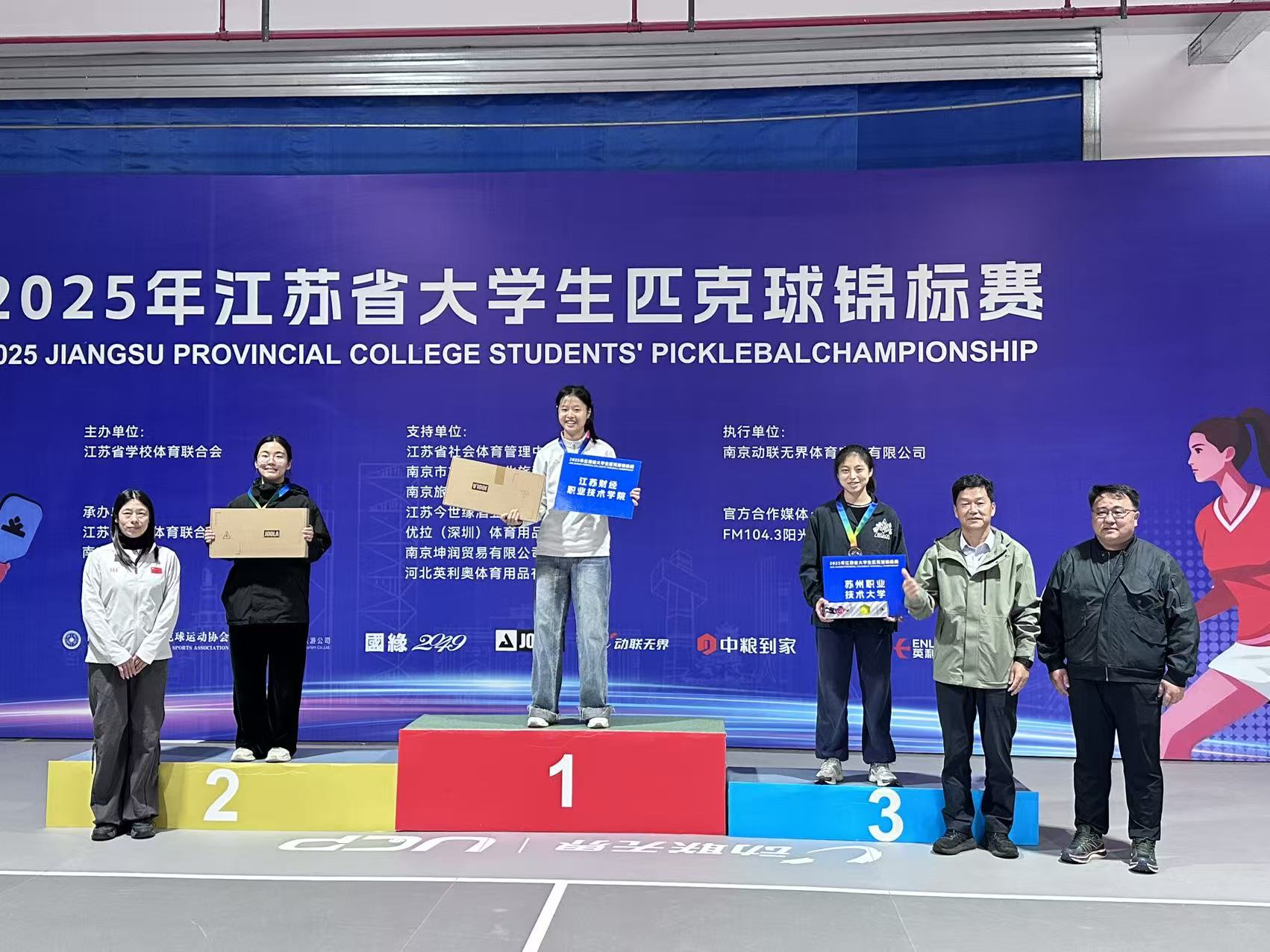 11月5日,在南京林業大學承辦的2025年江蘇省大學生匹克球錦標賽上,我校代表隊取得優異成績。由體育工作部厲成波老師指導的代表隊,最終在37支參賽隊伍中脫穎而出,田欣同學憑借出色發揮,榮獲女子單打冠軍。