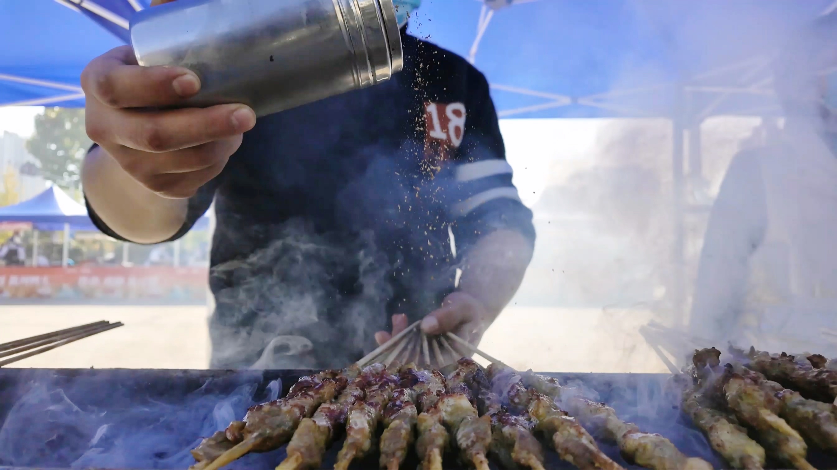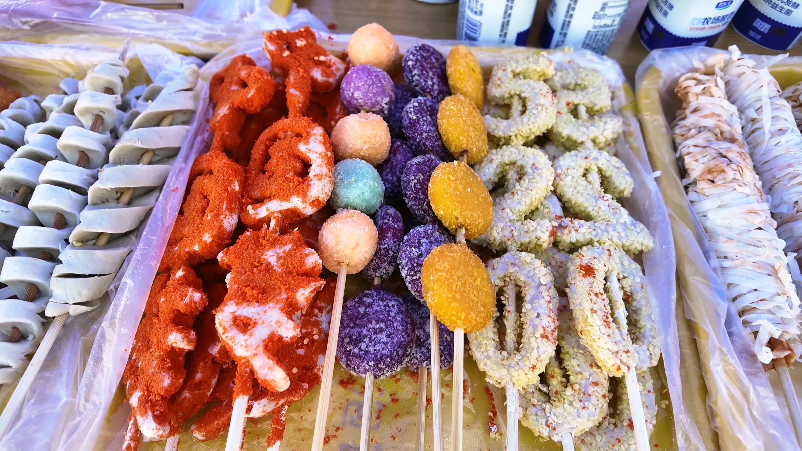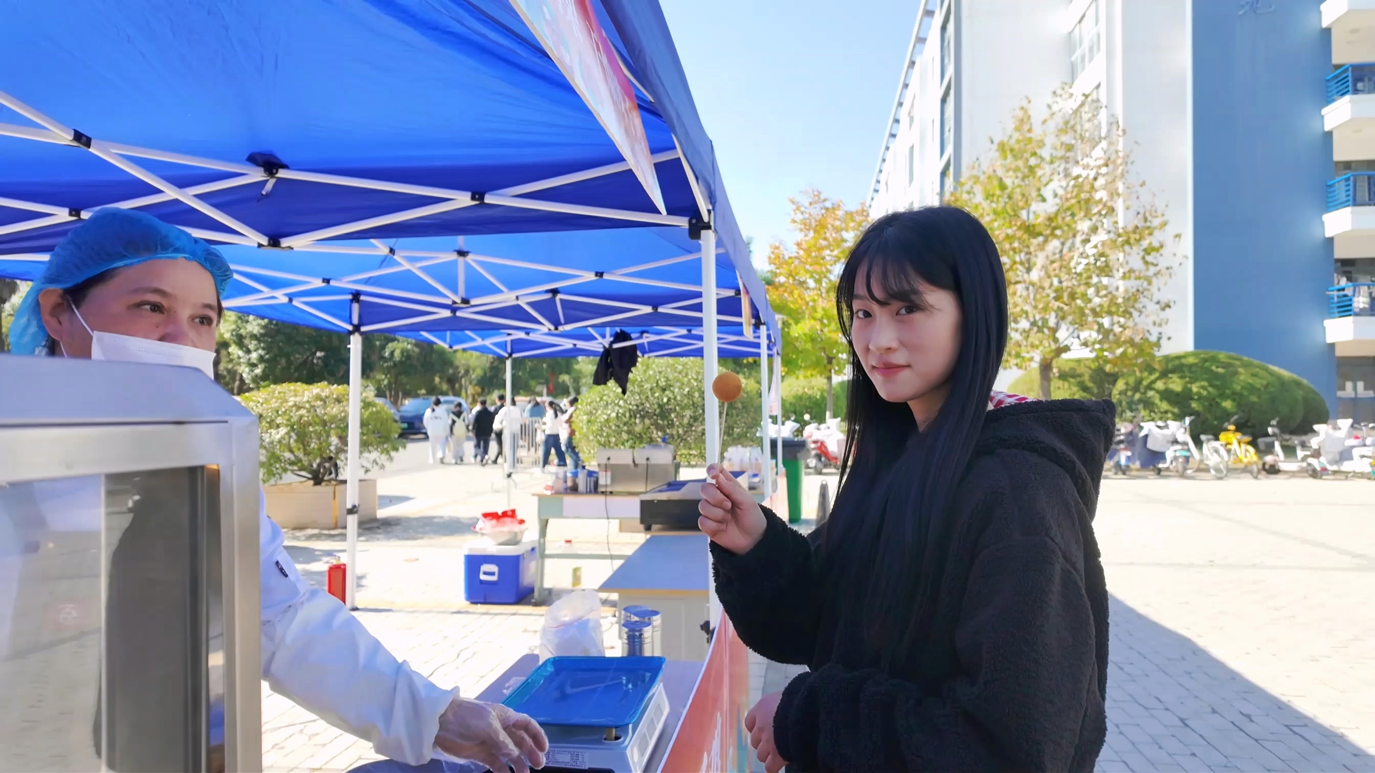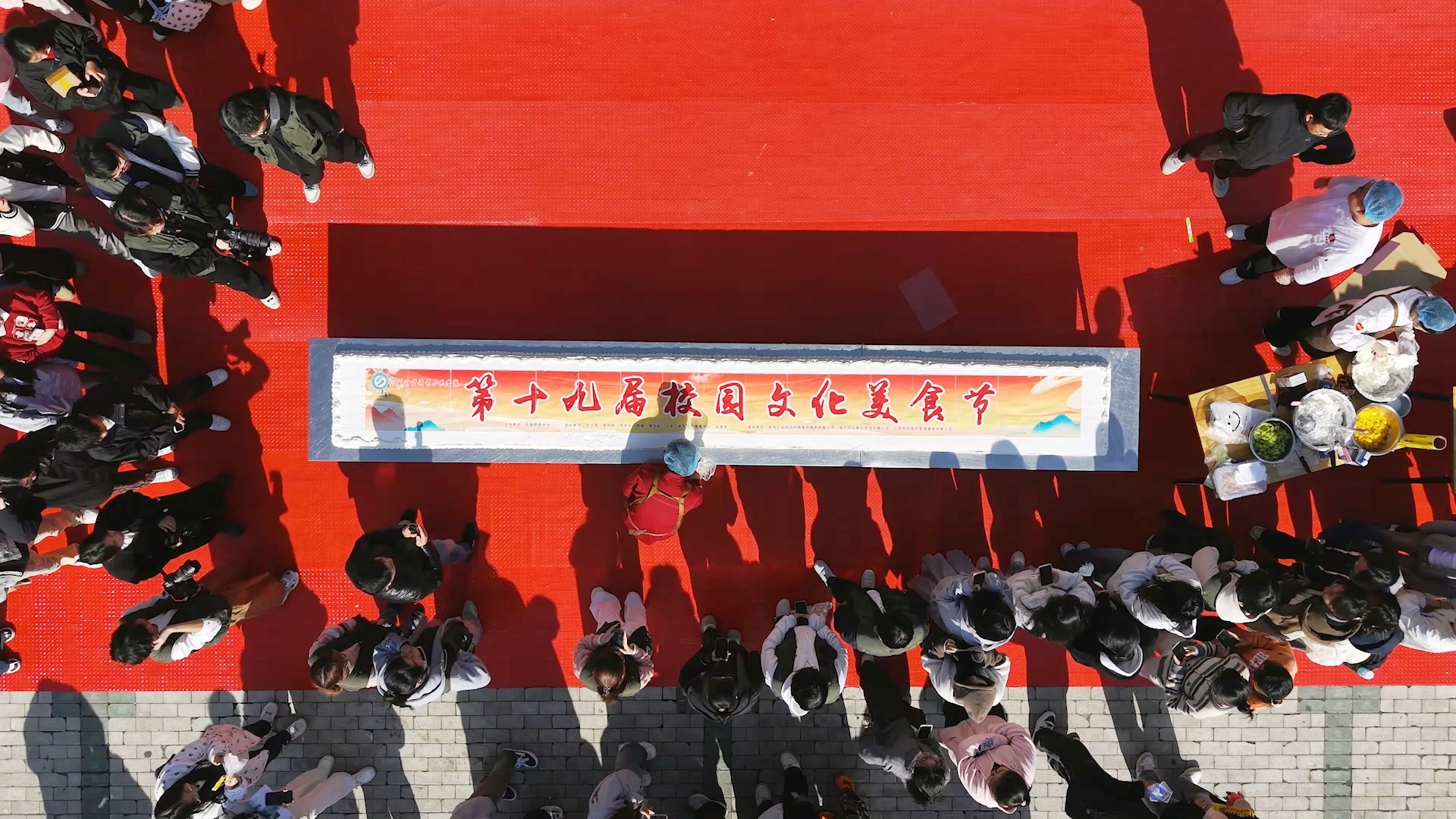 在西食堂廣場,5米長的巨型蛋糕驚艷亮相,金黃的奶油搭配新鮮果飾,不僅顏值吸睛,入口綿密香甜,剛一登場便圍滿了前來品嘗的師生,成為全場當之無愧的“人氣王”。各式各樣的美食琳瑯滿目,空氣中彌漫著各種食物誘人的香氣,同學們開心地品嘗特色美味。羊肉串,煙火繚繞的終極美味;罐罐烤奶茶,茶香奶韻,治愈人心;棉花糖,每一口都是對童心的直接召喚;烤腸,肉質緊實彈牙,越嚼越香;冰糖葫蘆,嘎嘣脆的甜,吃了一顆還想下一顆……此情此景,構成了一幅充滿生機與煙火氣的校園畫卷。來自四川的宋宇詩同學開心地表示,學校搭建了這個美食文化平臺,展示學生風采,讓她了解到了非遺文化和美食文化,同時也增加了同學們的凝聚力。