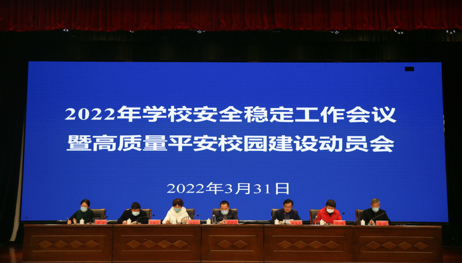 3月31日下午,2022年學校安全穩定工作會議暨高質量平安校園建設動員會在圖書館多功能報告廳舉行。學校領導,全體中層干部,保衛處全體工作人員參加大會,會議由副校長梁楓主持。